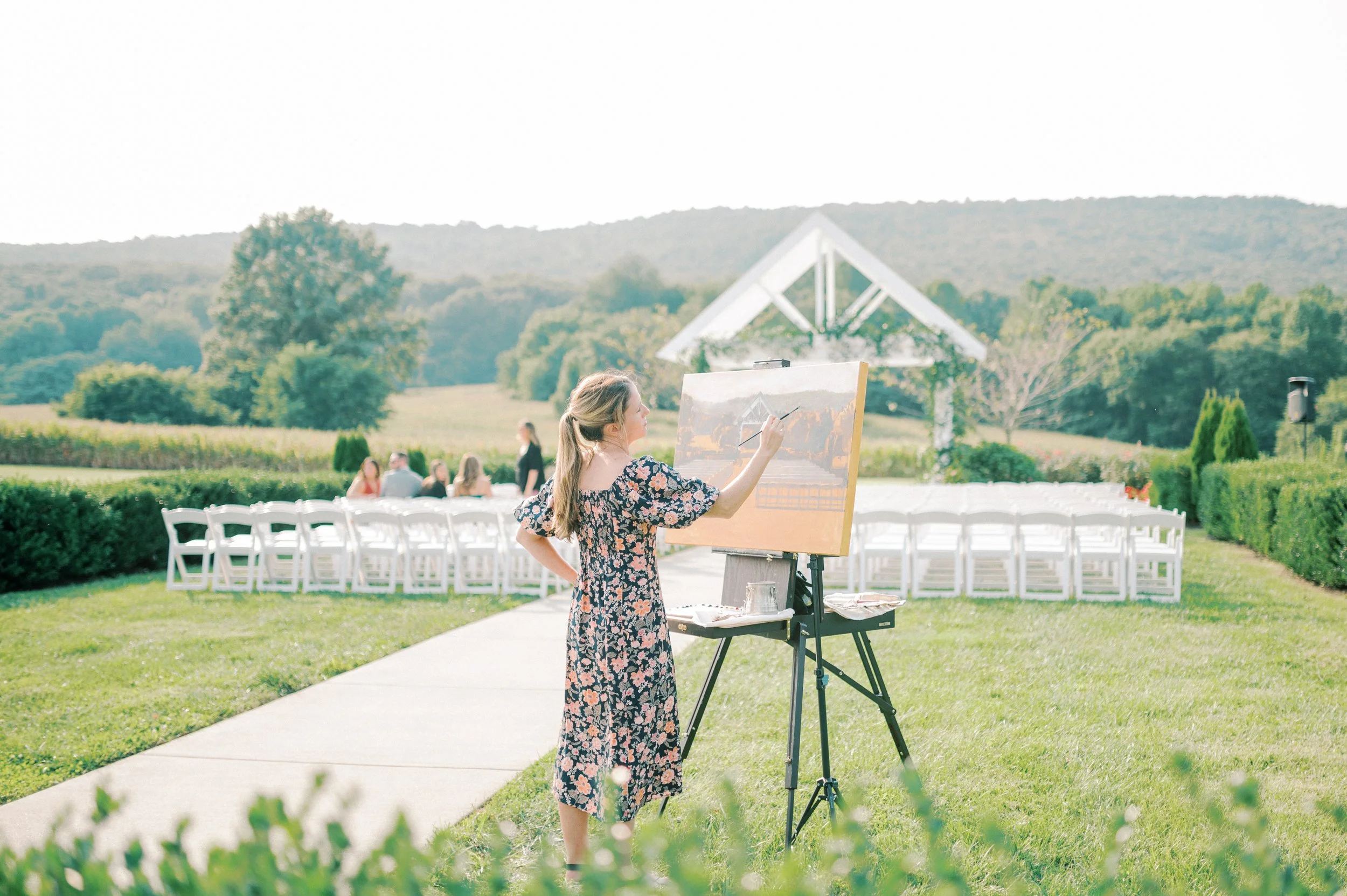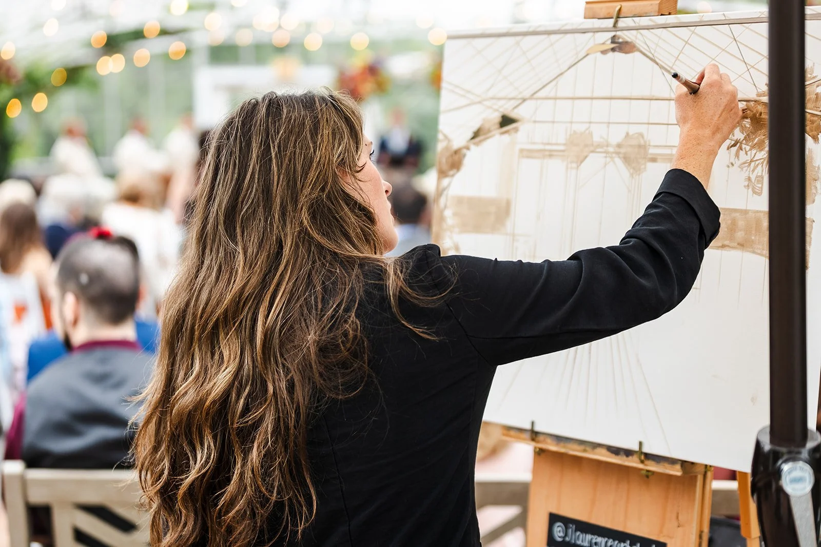 With regards to detailed portraits, I only guarantee the bride and groom in the painting. I then fill in the painting with guests, people in view, or whatever I experience and feel is best for the painting.